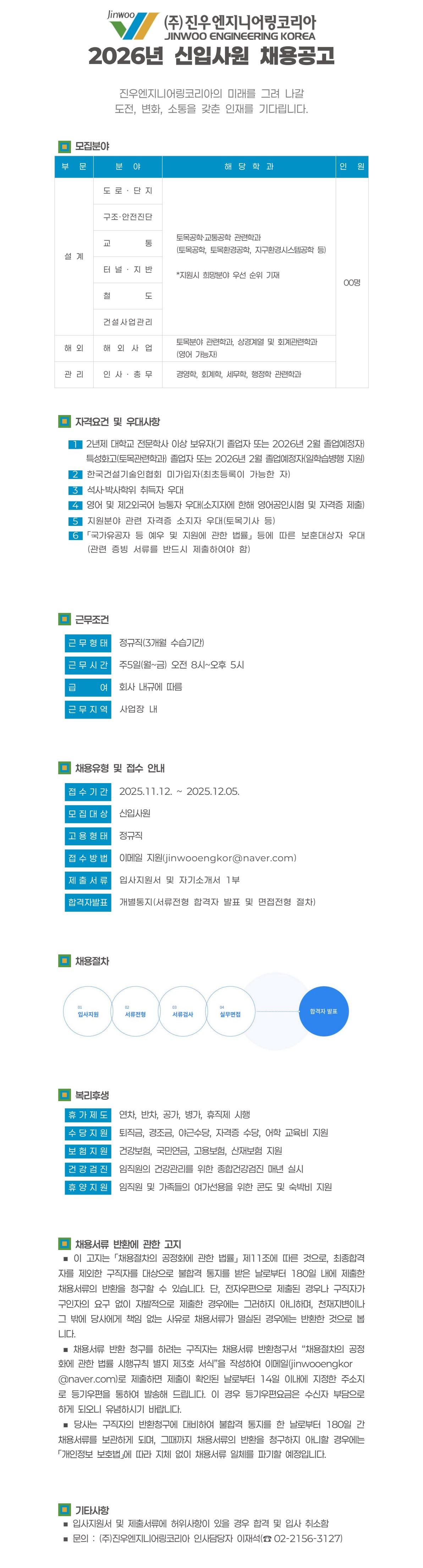 (주)진우엔지니어링코리아는 축적된 경험과 기술력을 바탕으로 건설 장치 EPC 분야 세계 일류기업으로 도약합니다. 지속적인 도전으로 인류의 번영과 국가의 발전에 기여하겠습니다.